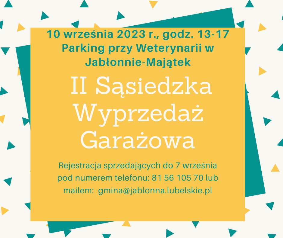 10 września zapraszamy na drugą w naszej gminie sąsiedzką wyprzedaż garażową. Już za trzy tygodnie będzie można pozbyć się wszystkich zbędnych rzeczy, oferując je kupującym w atrakcyjnych cenach (ewentualnie za darmo lub na wymianę).